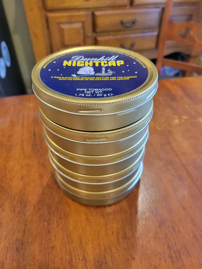 Up for auction are five tins of Dunhill Nightcap that I purchased in early 2014. All tins are in perfect shape and have been stored with care.