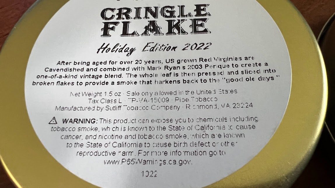 Cringle Flake was blended from 20 year old Red Virginia and 19 year old Perique. As a Holiday Edition 2022, it is no longer available.