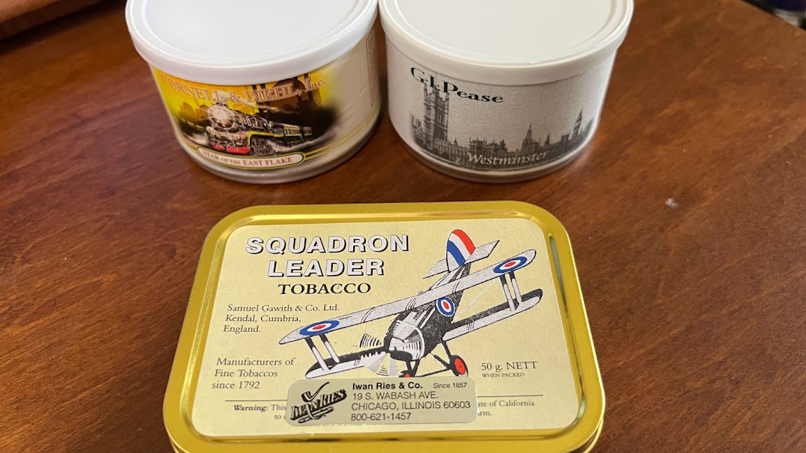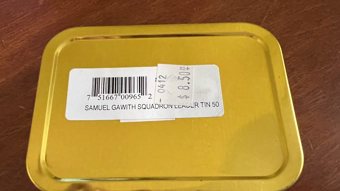 One 50 gram tin of Samuel Gawith Squadron Leader, a lighter English blend, acquired from Iwan Ries and cellared in 2012.