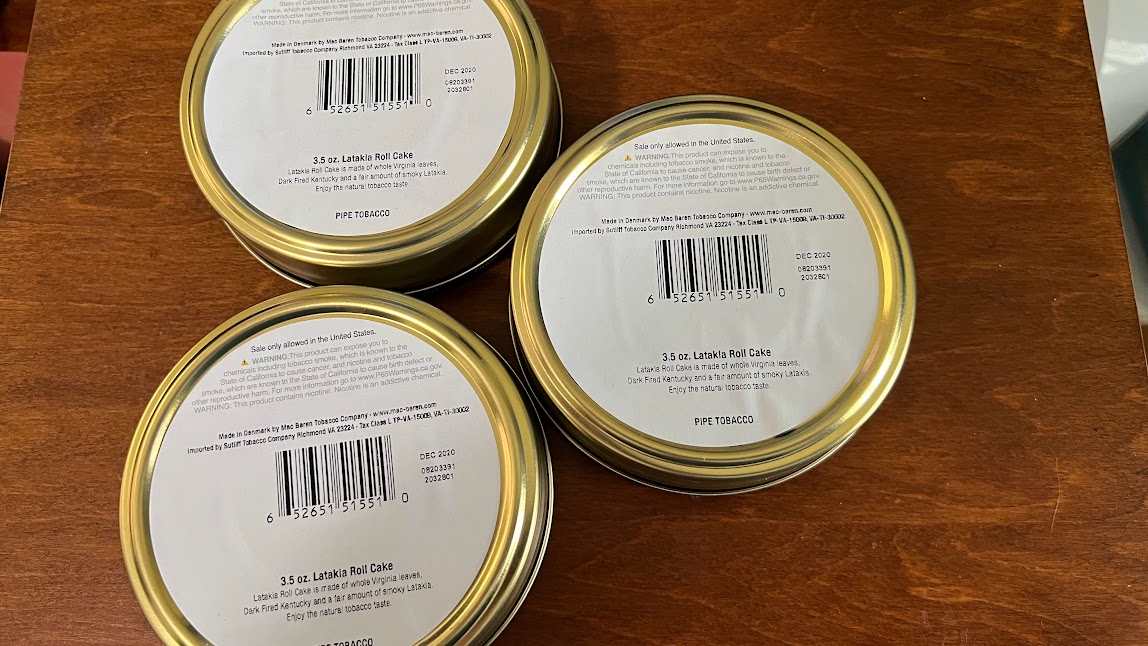 Three 3.5 ounce Tins of Mac Barenās Latakia Rolls, Limited Edition