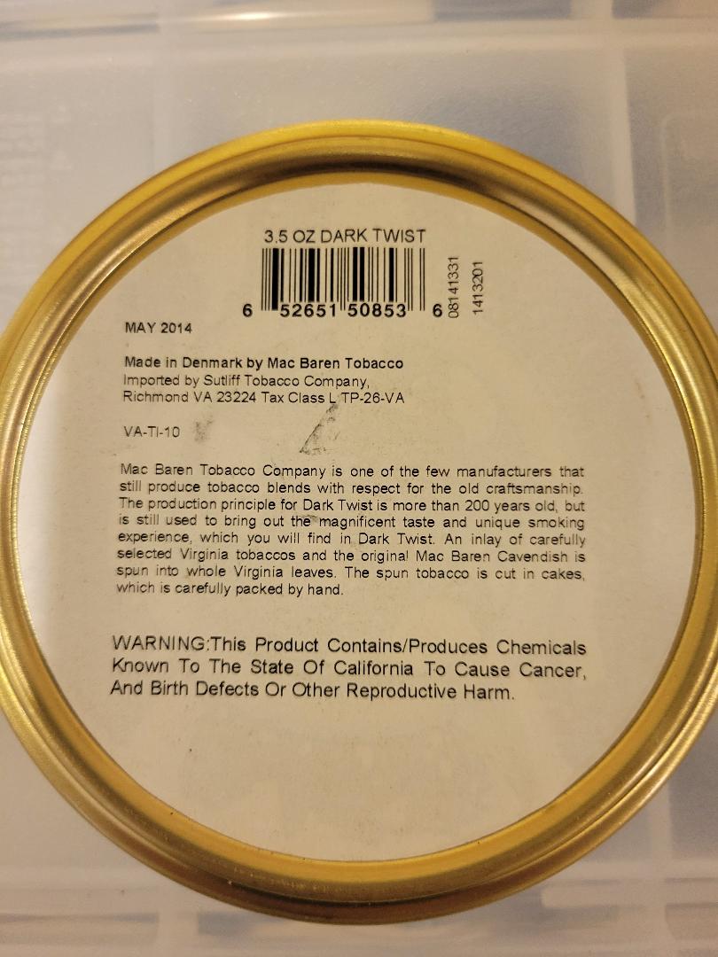 1x MacBaren Dark Twist Tin from 2014. This blend has over 7 years of age and has aged very nicely. Terrific smoke.
