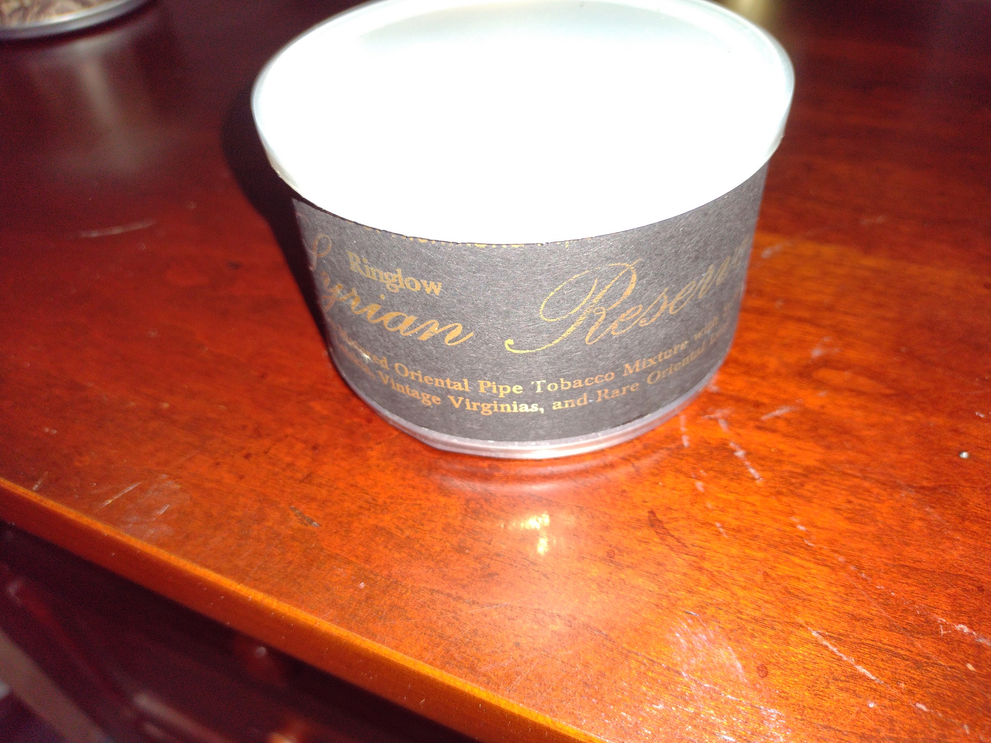 sealed tin of Ringlow Syrian Reserve from, I believe, 2015 or 2016. Picture of bottom with retail sticker attached included.