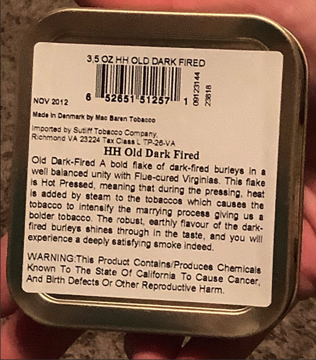 First Year! Mac Baren HH Old Dark Fired 100g 2012
