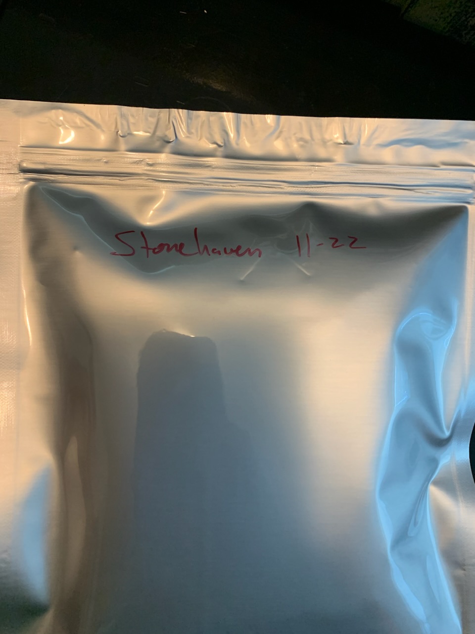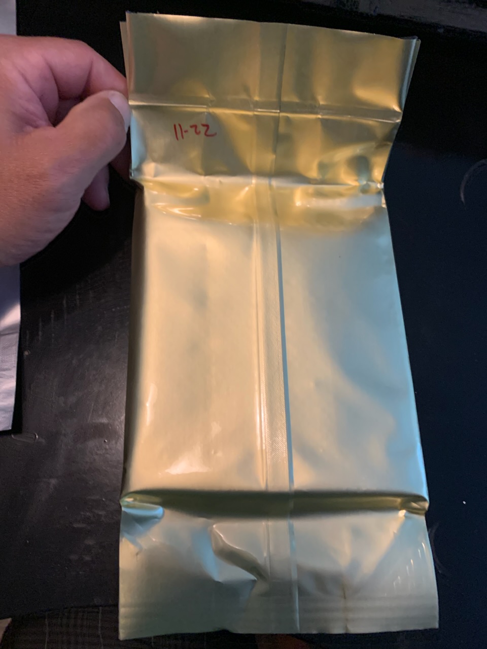 8 oz bag purchased in November of 2022 and kept in a cool, dry cellar and in mylar. Gold bag looks pristine, good luck and enjoy!