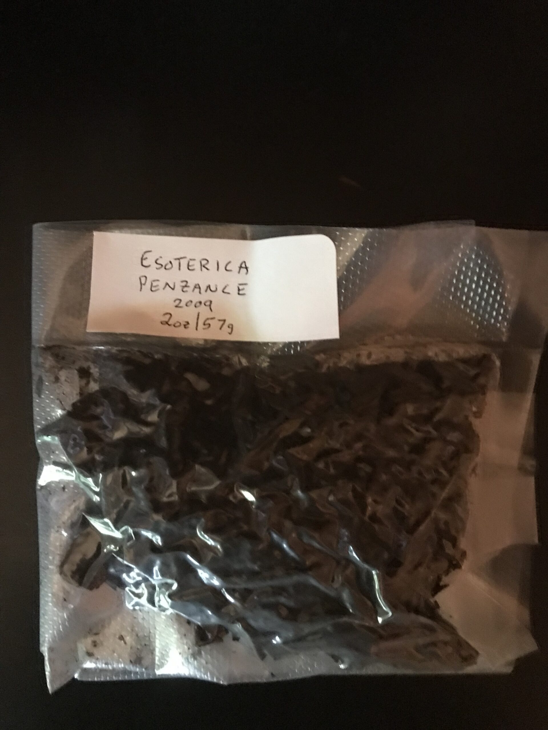 This is 2oz/57g of Esoterica Penzance from 2009. Been jarred ever since, but moved to sealed bag.