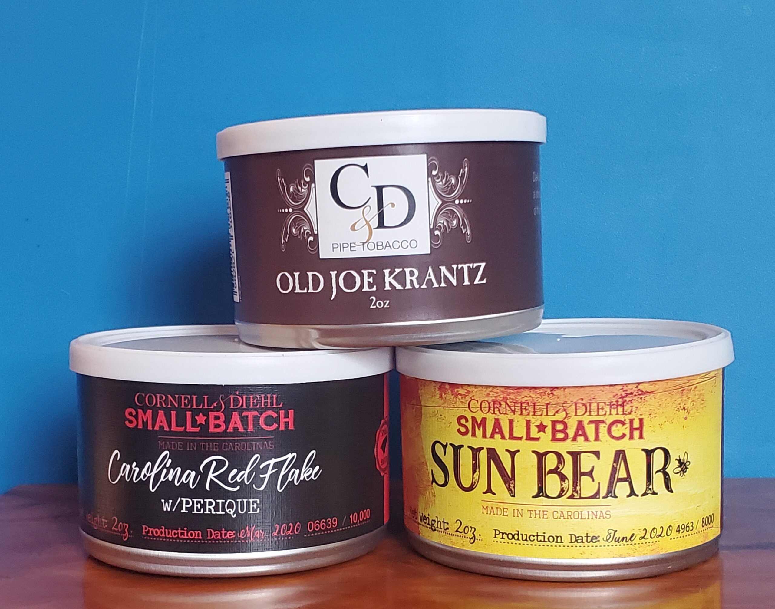 3 sealed tins of C&D including 2017 Old Joe Kranz, 2020 Small Batch Sun Bear and 2020 Small Batch Carolina Red Flake w/Perique. All are delicious and ready to smoke. NO RESERVE. Get them here and now!