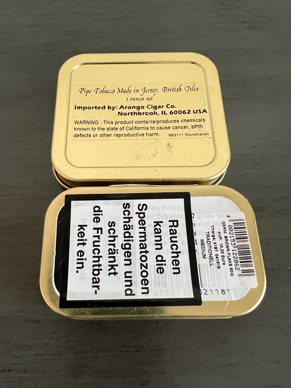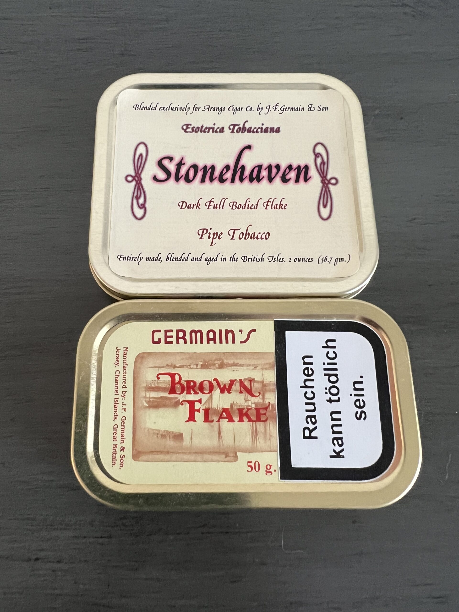 Esoterica Stonehaven and Germain’s Brown Flake 2oz. Tins