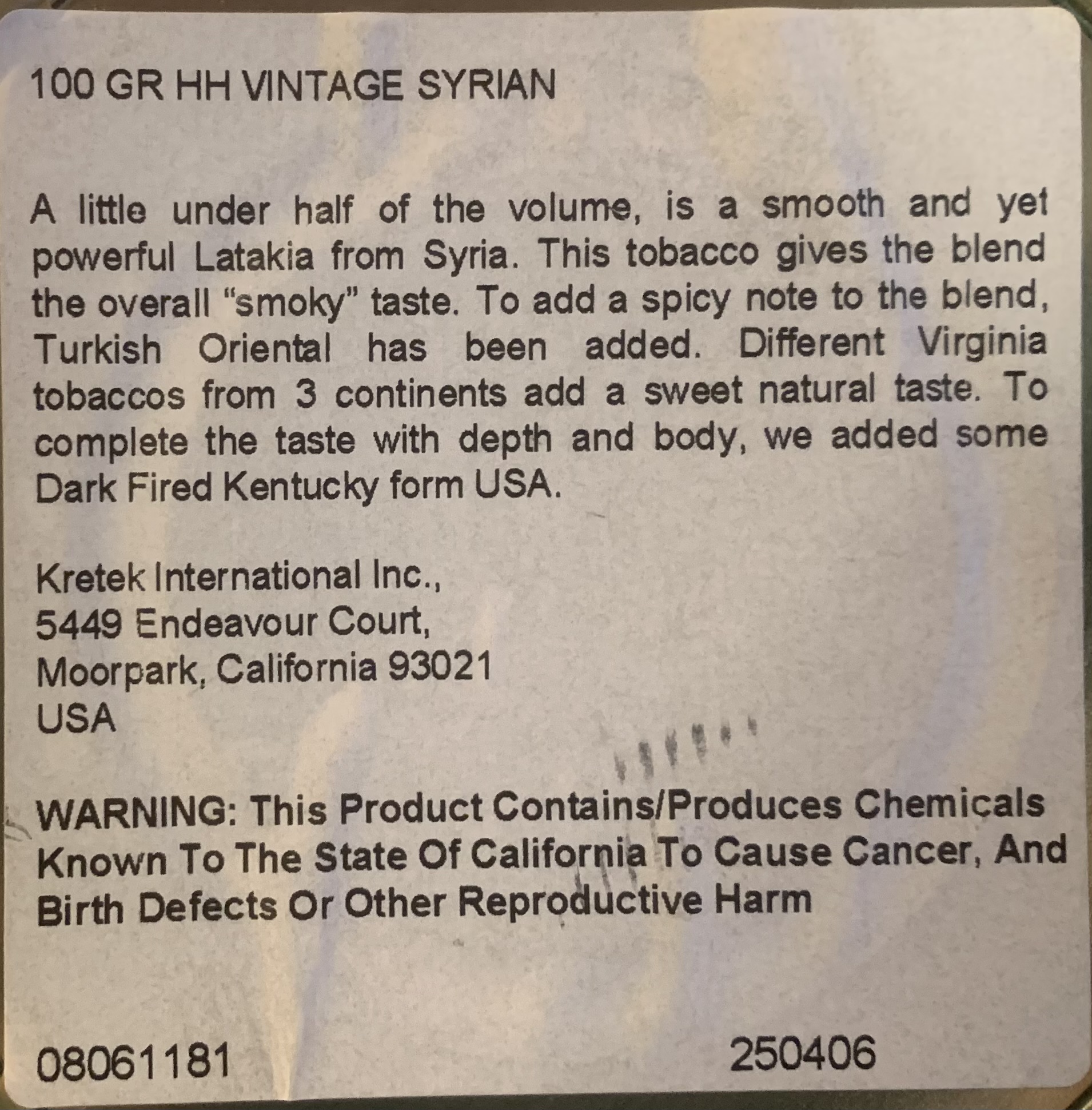(Ended) Mac Baren HH Vintage Syrian 100g - 2006