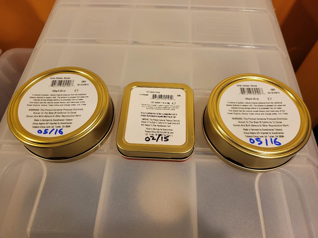 3x Tins of Orlik Golden Slice (2x 3.5 oz, 1x 1.76 oz) from 2015-2016