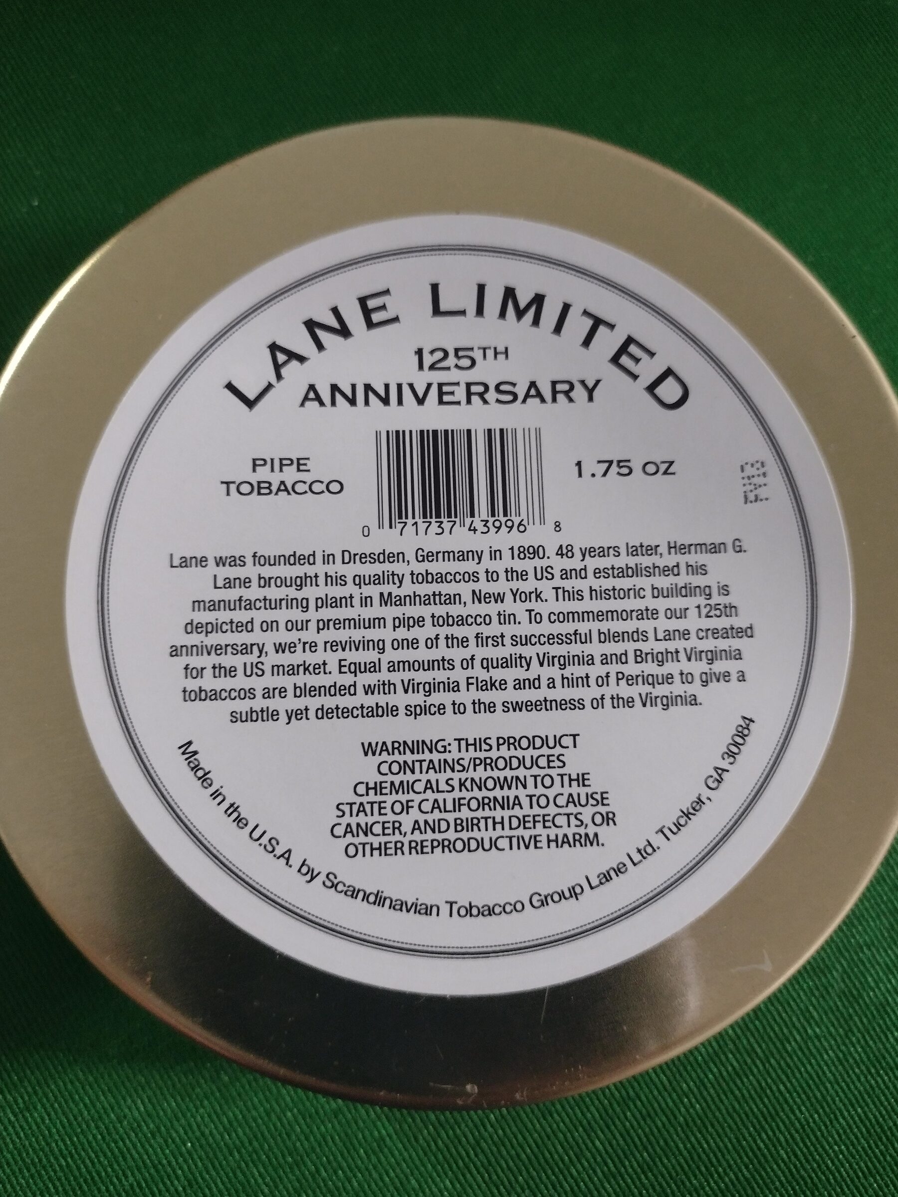1.75oz tin of Lane Limited 125th Anniversary. Date unknown but 5 years is a good guess. 5 day auction.