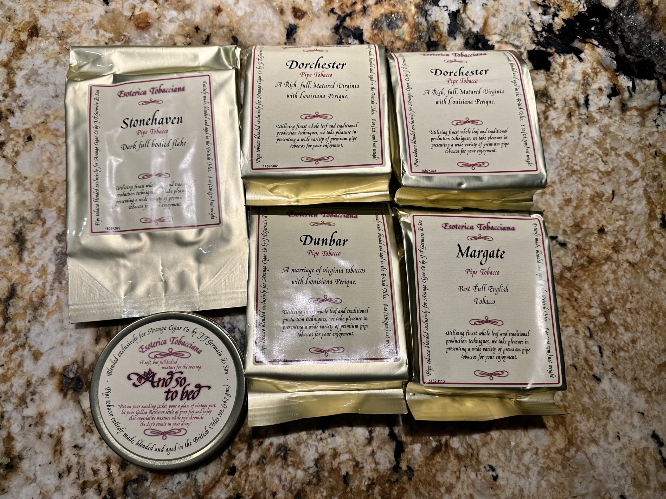 Unopened (2x) 8oz Dorchester, (1x) 8oz Stonehaven, (1x) 8oz Dunbar, (1x) 8oz Margate, (1x) 2oz And So To Bed