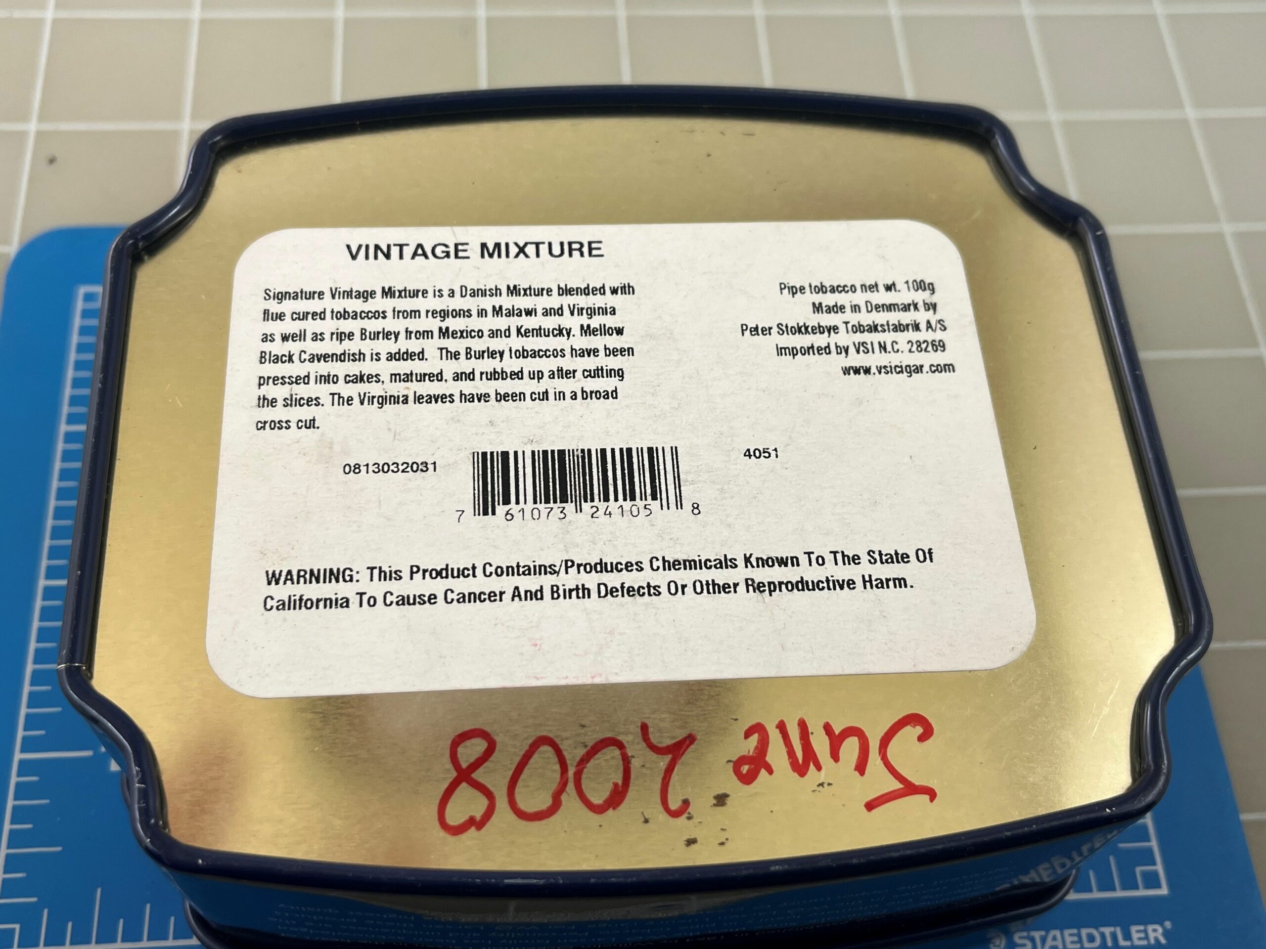 Vintage W.O. Larsen Signature Vintage Mixture 100g. Tin.