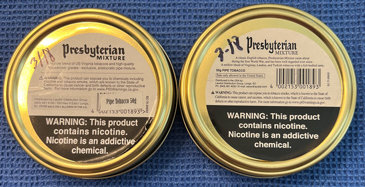 20 unopened 50gr tins of Presbyterian Mixture I acquired in 2018. Currently have 5 years of age on them. Always stored in my climate controlled tobacco cellar. 5 Day auction and no reserve price!