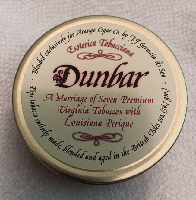 A 2 oz. tin of Esoterica Dunbar purchased in 2022.