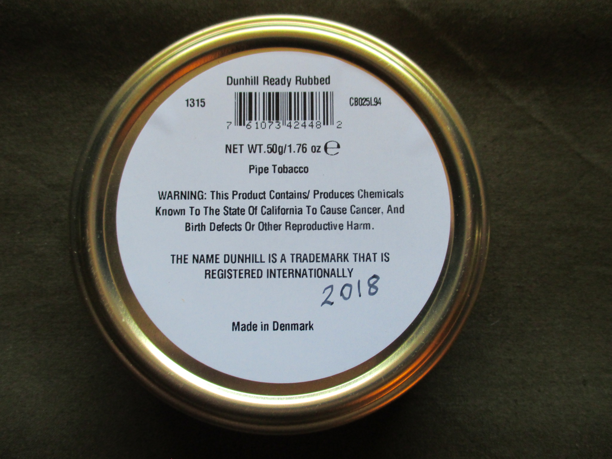 Clean sealed tin of Dunhill Ready Rubbed from 2018.