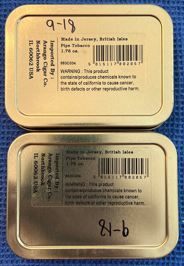 2 unopened tins of Germain's Royal Jersey Original Latakia Mixture. I acquired these in September of 2018, so they have right at 5 years of age on them. Always stored in my climate-controlled tobacco cellar. 5 day listing no reserve, or buy it now.