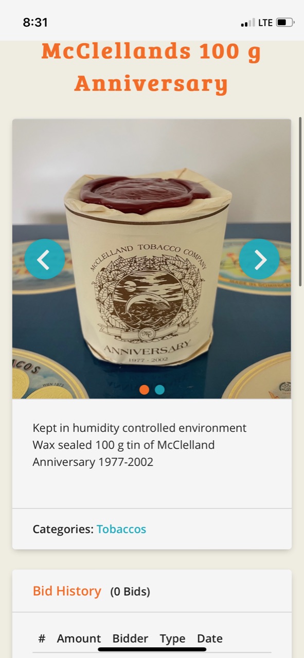 Wax sealed 100 g tin of McClelland Anniversary 1977-2002