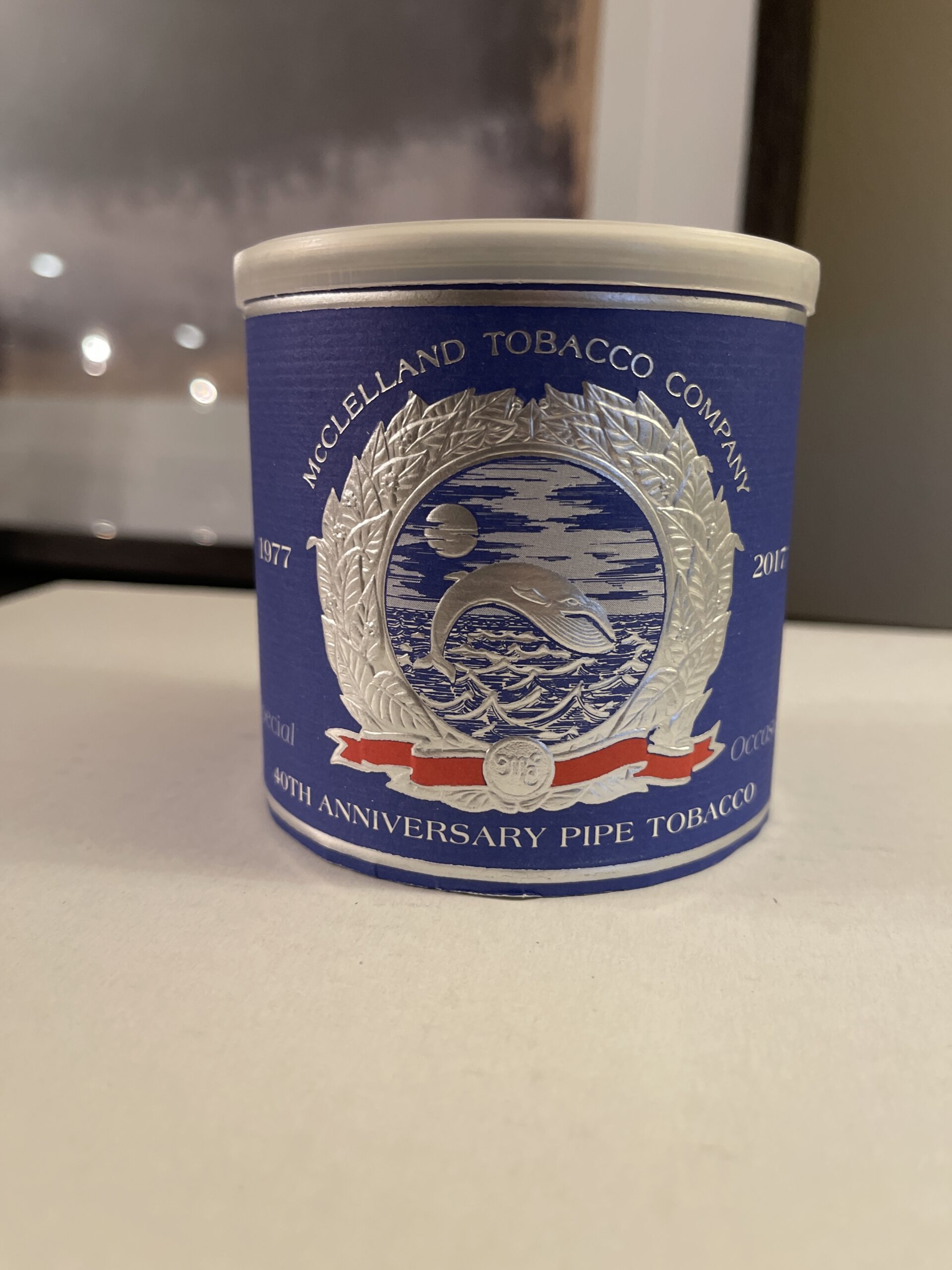 Sealed tin of McClellandâs 40th Anniversary blend from 2018.