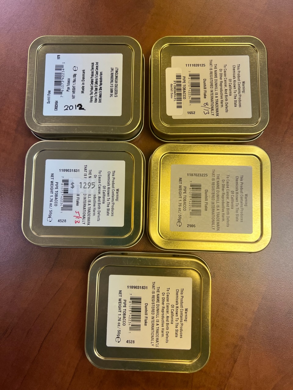 4 Tins dated 2011 and 1 Tin dated 2012.