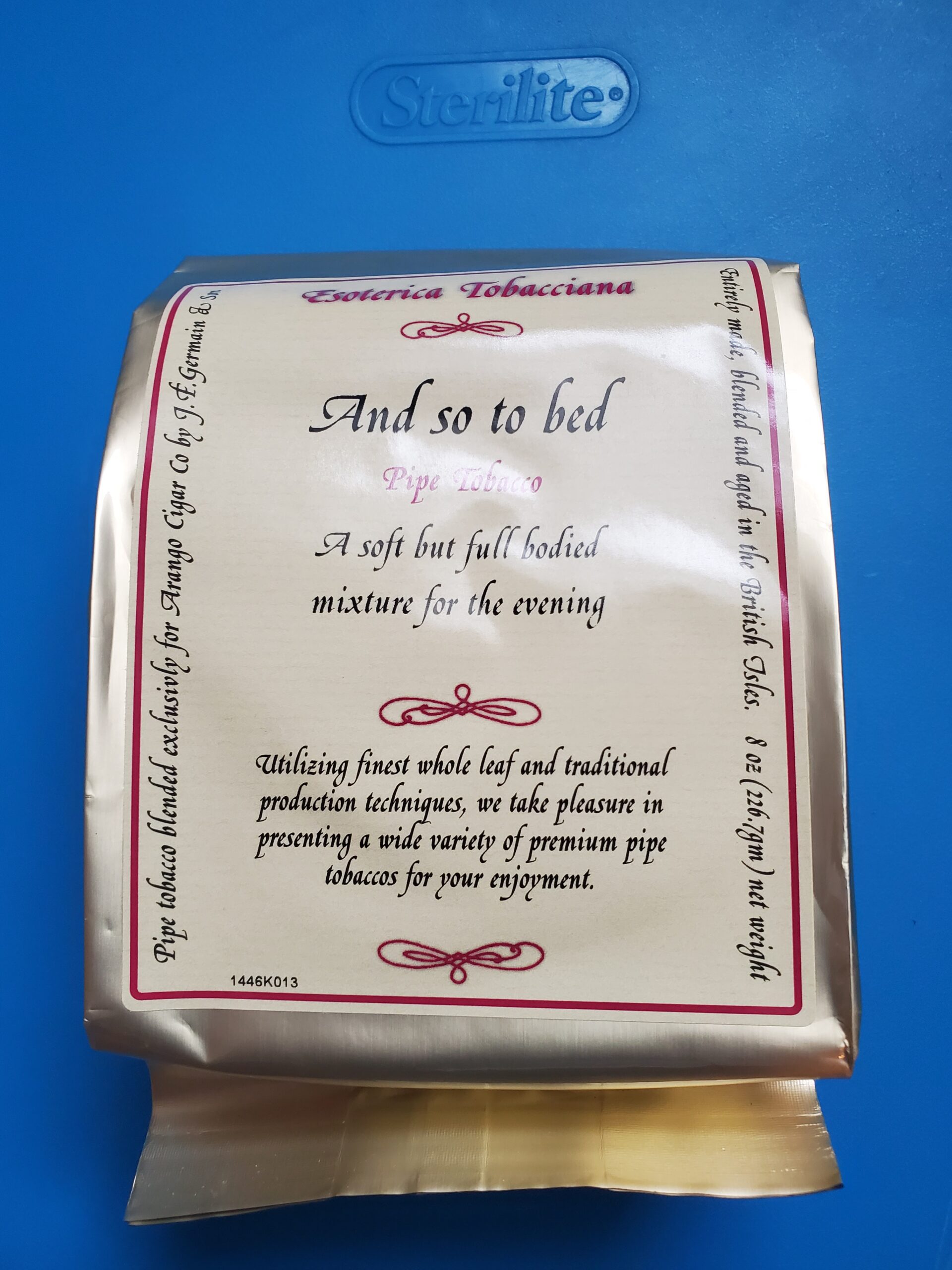 Esoterica 8 oz gold bag of And So To Bed. Always hard to find and perfectly sealed. Ready to smoke or just add this to your collection. Don't miss this!