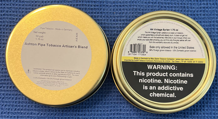 Syrian Latakia Variety! 1 tin of Ashton Artisan's Blend & 1 tin Vintage Syrian by MacBaren