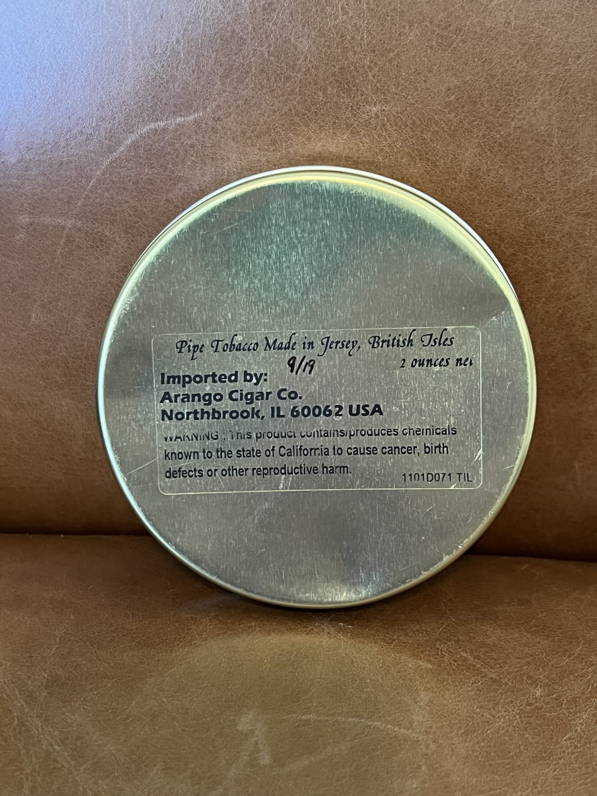 This has been in my climate controlled cellar since I purchase it. The tin is in great condition with a few minor depressions and is well sealed.