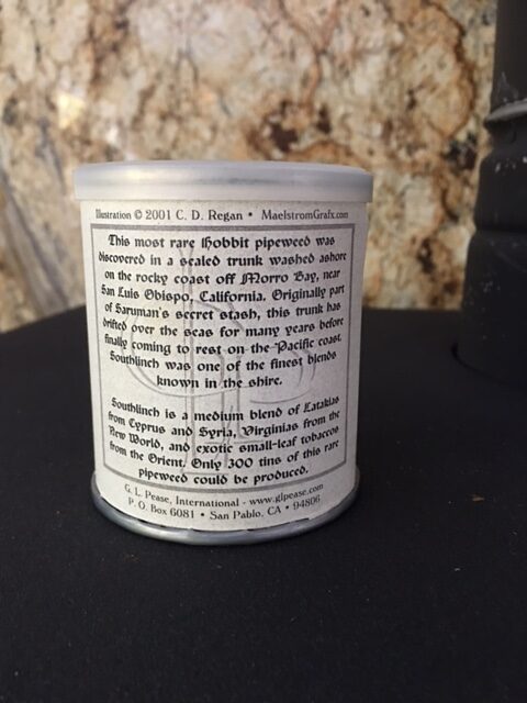 2oz tin produced by GL Pease exclusively for the 2002 NASPC Pipe and Tobacco Show. Middle Earth themed. Limited production of 300 tins.