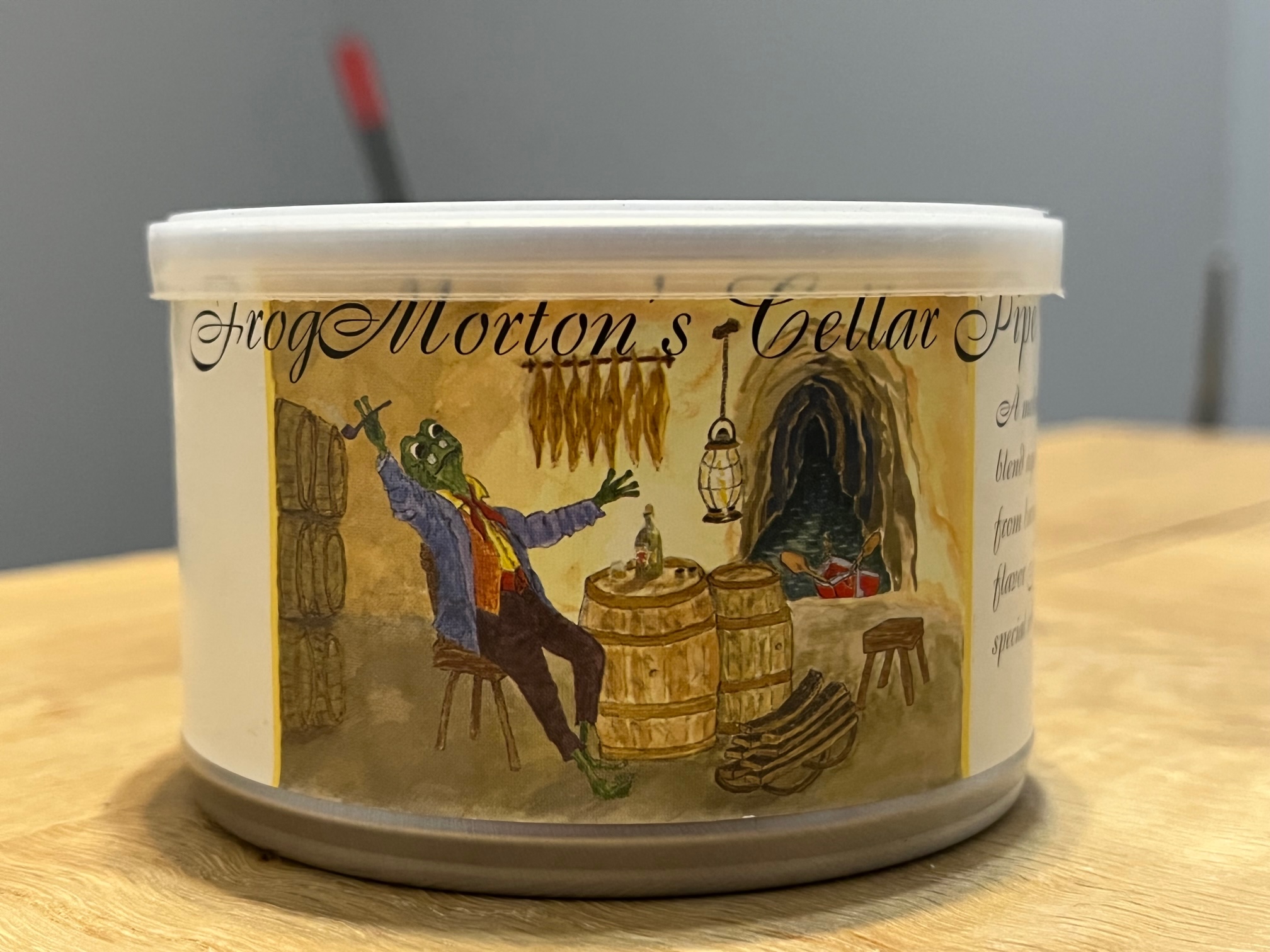 This is an unopened tin of McClelland's popular Frog Morton's Cellar tobacco from 2016. Stamp on the bottom is 472516 and it has been stored in a cool, dark closet since purchase.