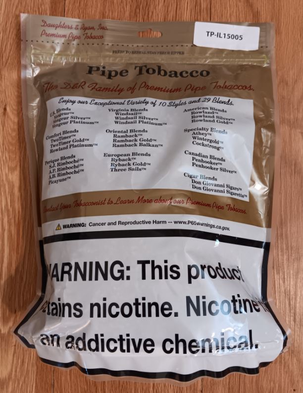 This is a 1 pound bag of Daughters & Ryan Rimboche SJ. This blend is no longer produced. As is normal for Daughters & Ryan blends, the tobacco is on the dry side. Date unknown. No reserve.