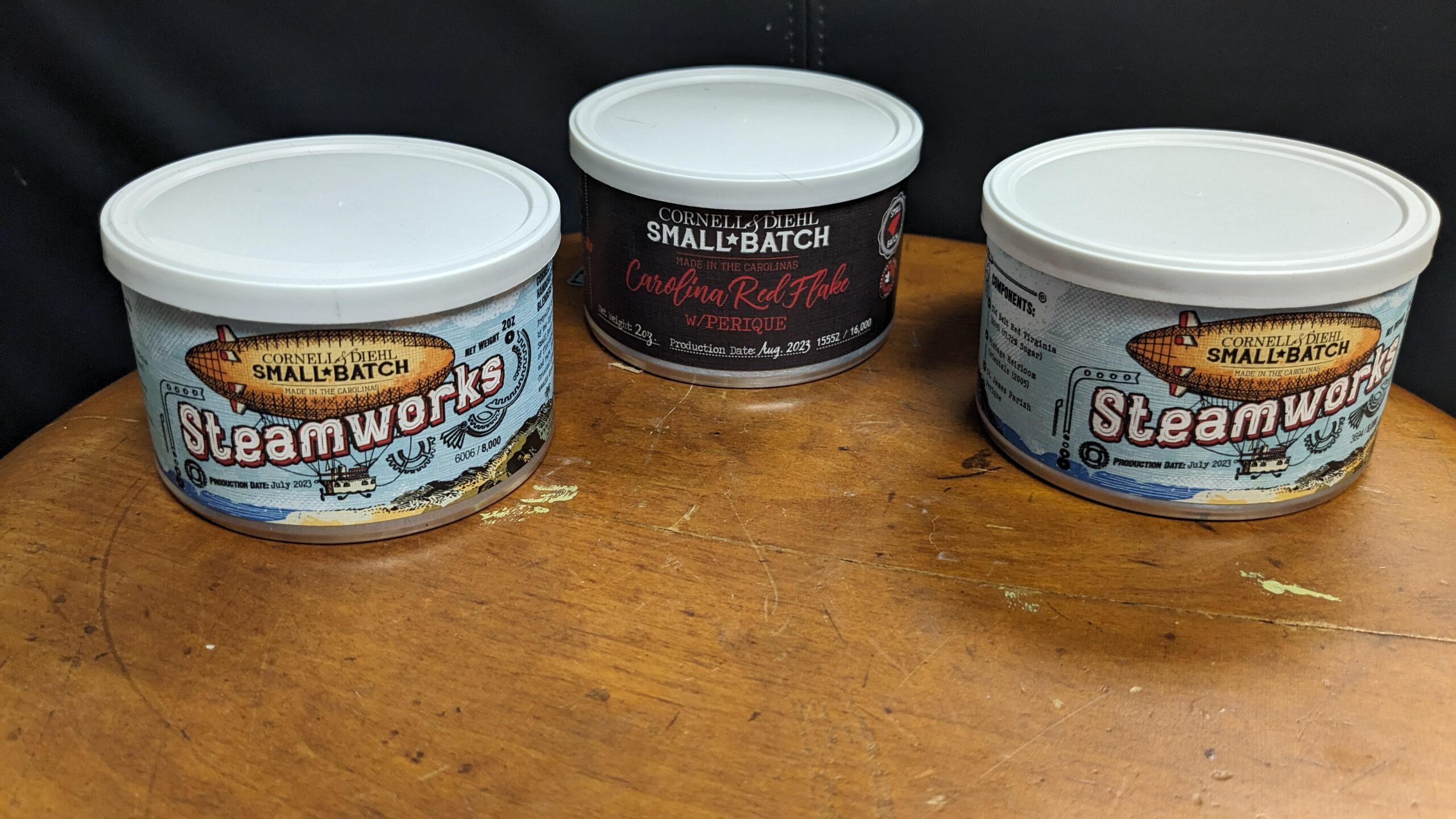 3 tin Cornell & Diehl Small Batch lot Steamworks Carolina Red Flake w/ Perique