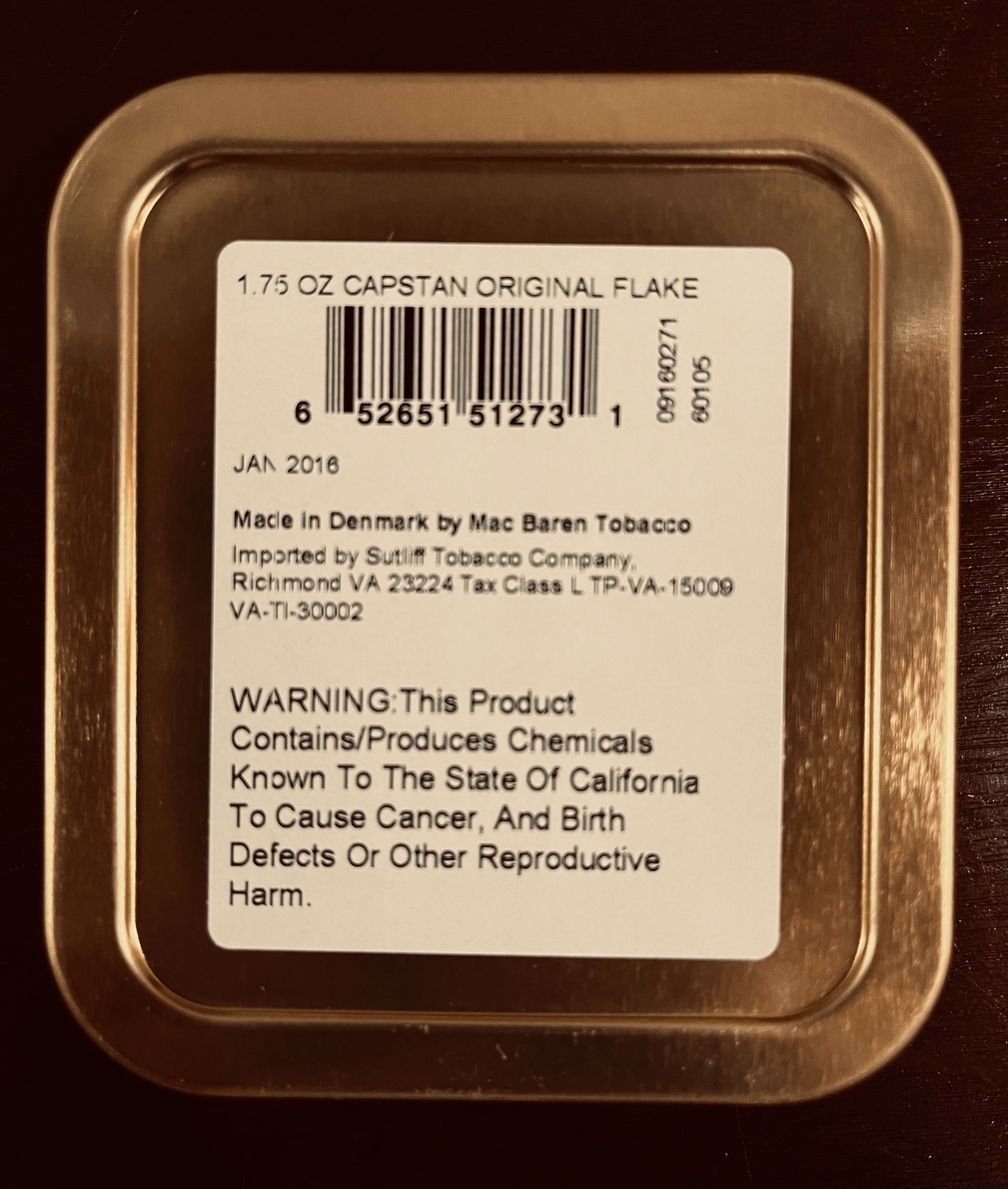 Capstan Original Navy cut Flake- blue from 2016 1.8 oz tin