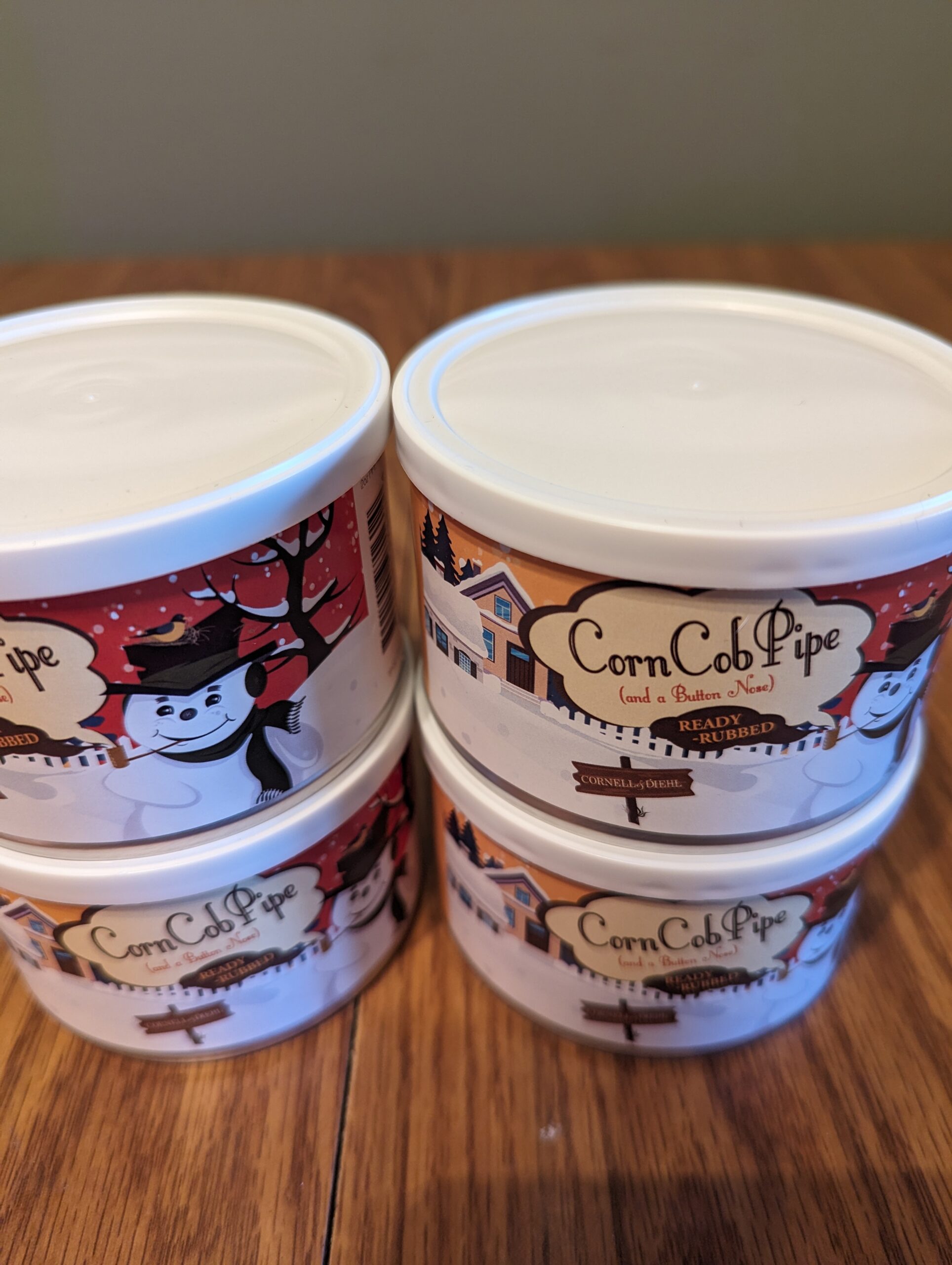 You are bidding on 4 sealed tins of Corn Cop Pipe (and a button nose) Ready Rubbed
