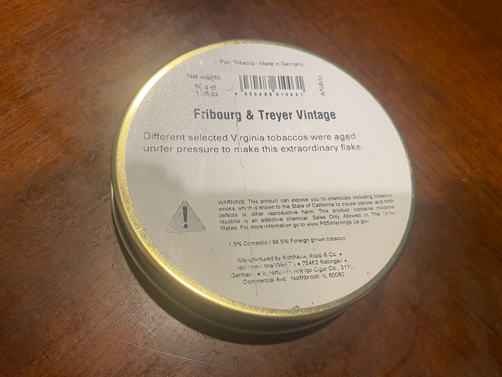 1 50g Fribourg & Treyer Vintage,was purchased 2021. It‘s difficult to find in stock. No reserve.