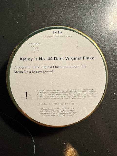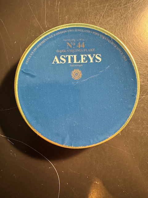 Sealed 50g tin of 2020 Astley's No. 44 Dark Virginia Flake.