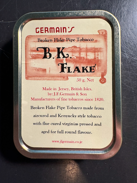 Sealed tin of 2018 Germain B. K. Flake Broken Flake Tobacco.