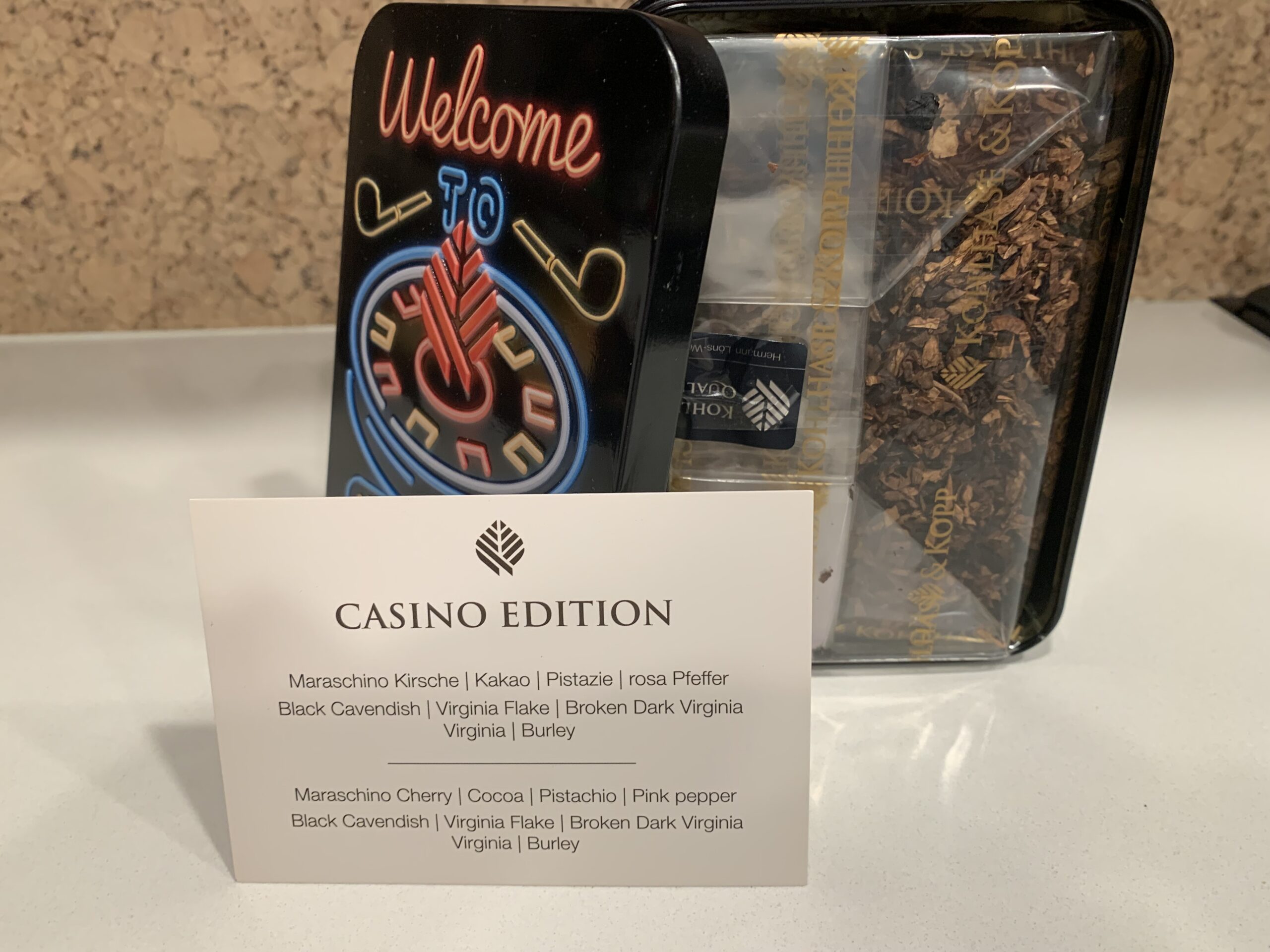 Fresh Danish aromatic comprised of Virginia Flake, Broken Dark Virginia, Black Cavendish, , and Burley. The mixture is topped with the flavoring of maraschino cherry, a hint of cocoa, a little pistachio, and pink pepper.