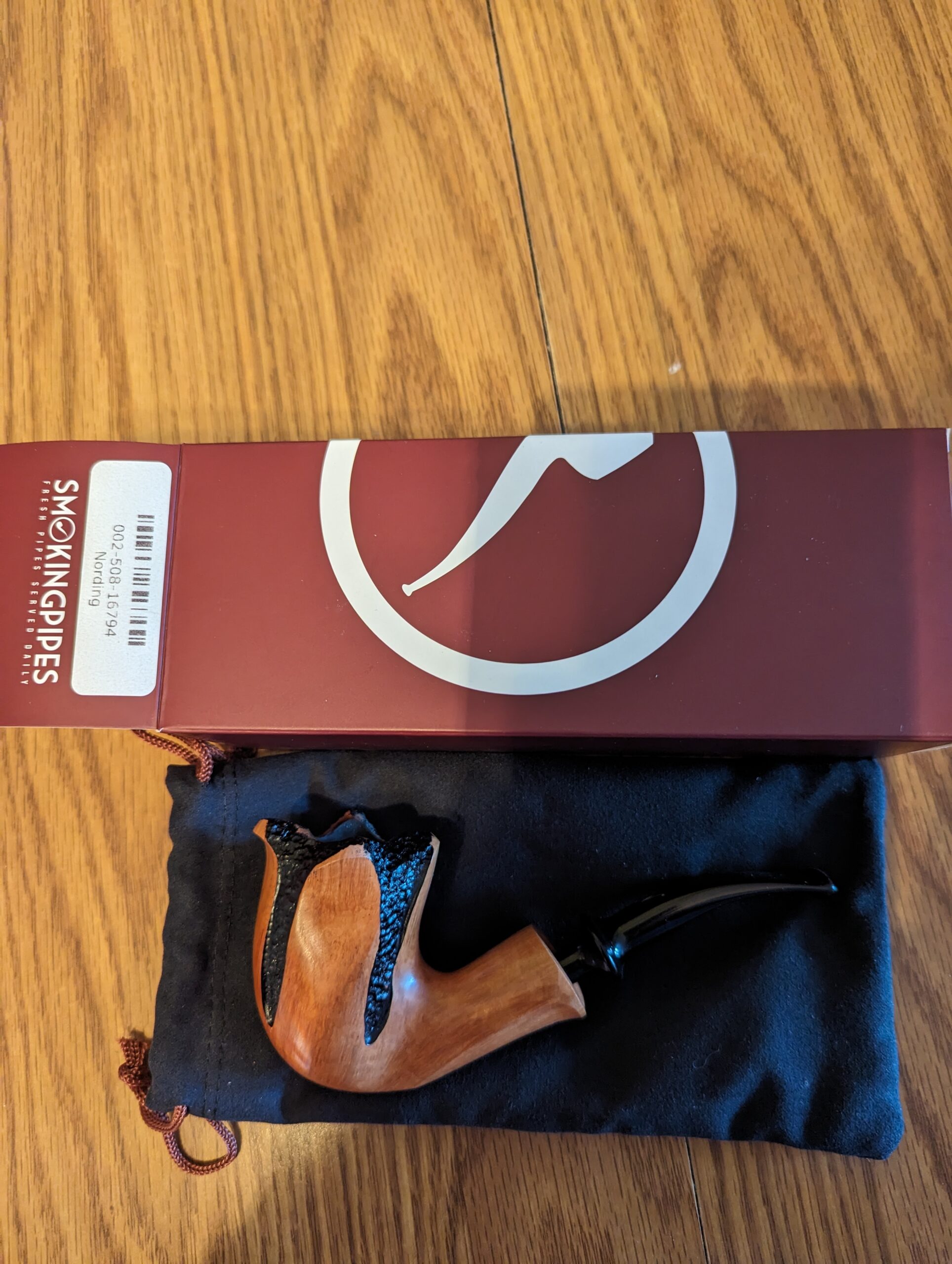 NO RESERVE on this FANTASTIC Nording PIPE. This pipe is sold out at Smoking Pipes, Hard to get. Excellant condition maybe smoked half a bowl. MAYBE, I don't remember. Thankyou for bidding shipped with original box and bag. Bid with confidence this is a wonderful pipe.
