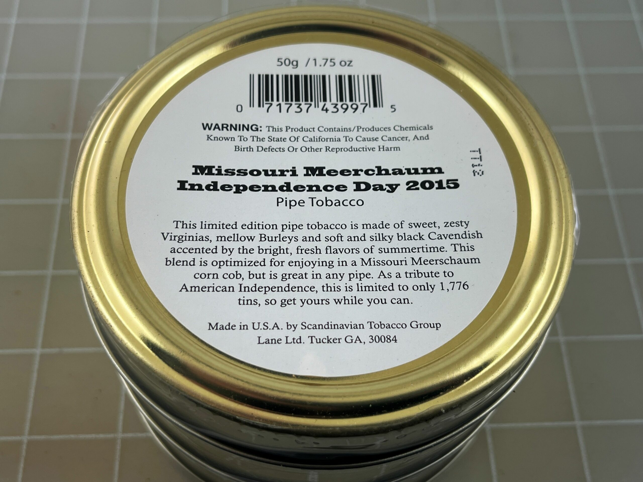 Lot of 3 Excellent Sealed Missouri Meerschaum Independence Day 2015 Limited Edition 50g Tins