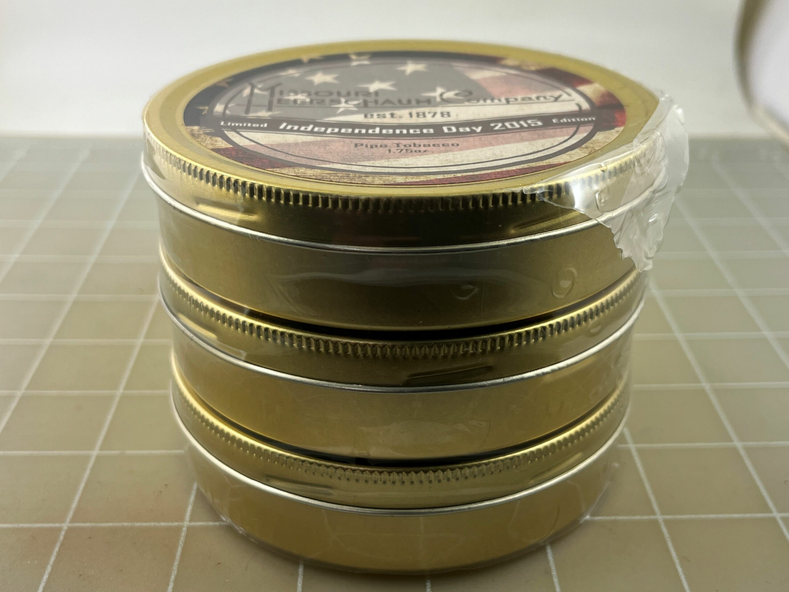 Lot of 3 Excellent Sealed Missouri Meerschaum Independence Day 2015 Limited Edition 50g Tins.