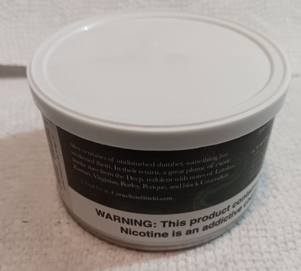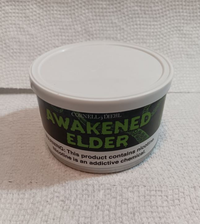 A 2 ounce tin of Awakened Elder tinned in September 2019. A blend of Virginia, Latakia, Perique, Burley, black Cavendish, and cigar leaf with over 4 years of age. No reserve.