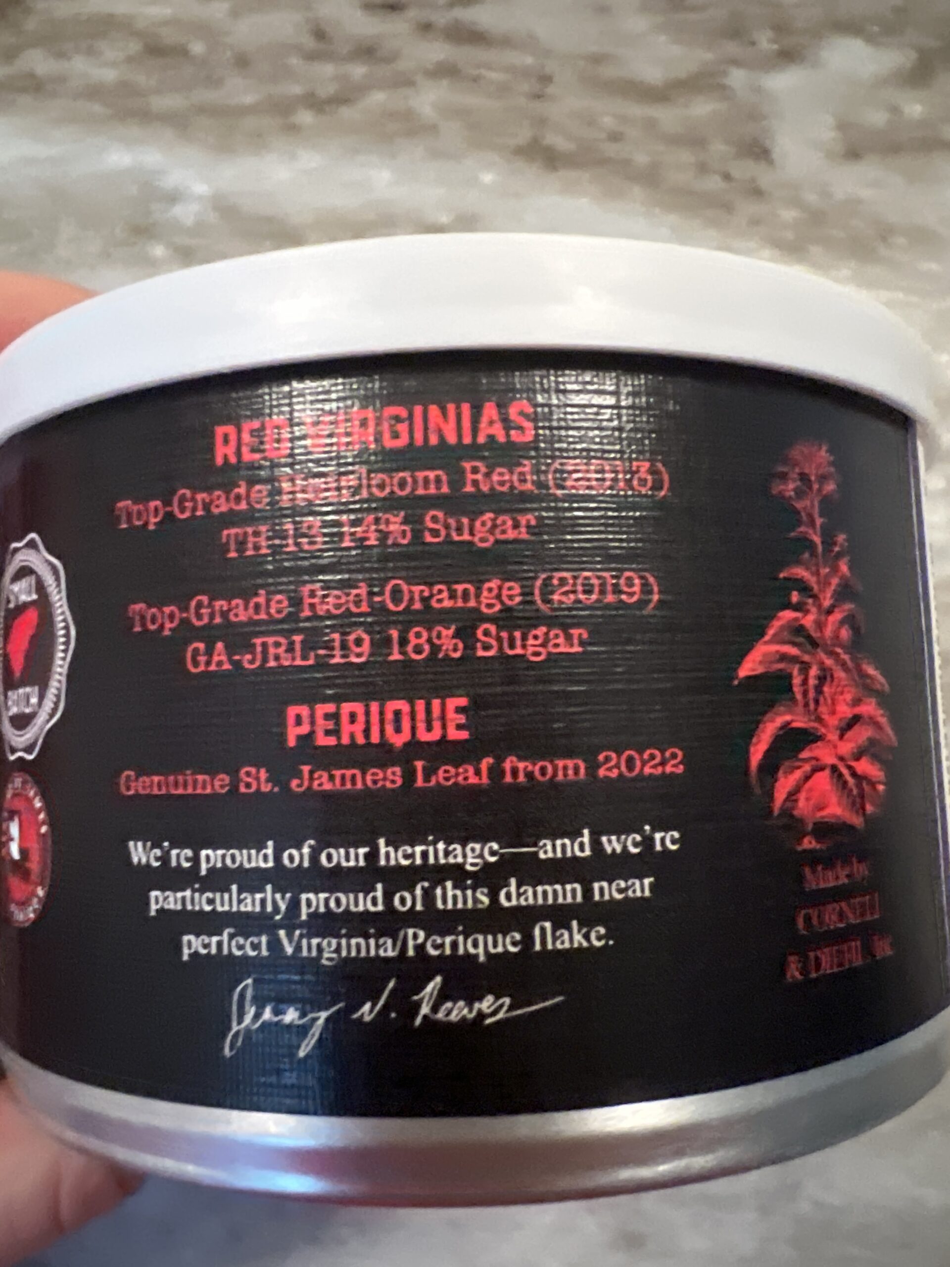 Cornell and Diehl Carolina Red Flake w/Perique. Number 5371 of 16,000 made.