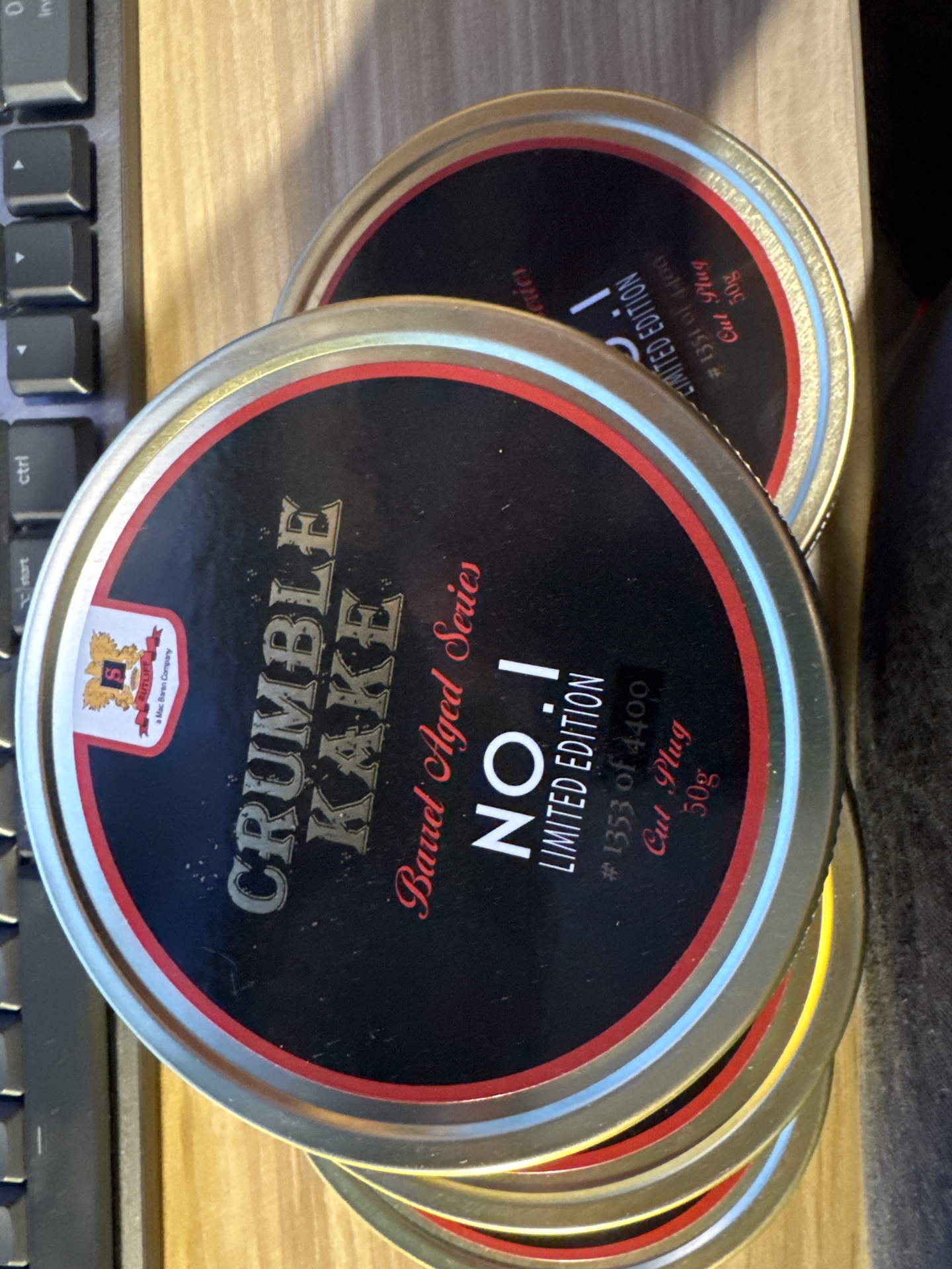 limited-edition Crumble Kake Barrel Aged No. 1, choice Virginias from three continents are heat-pressed then matured an aged apple brandy barrel before being pressed again and sliced into old-fashioned plugs.