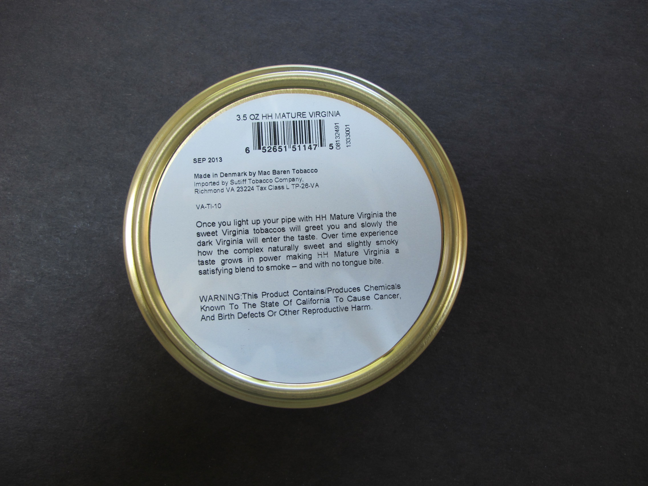 Here's a 3.5 ounce tin of HH Mature Virginia. The tin date is September 2013.