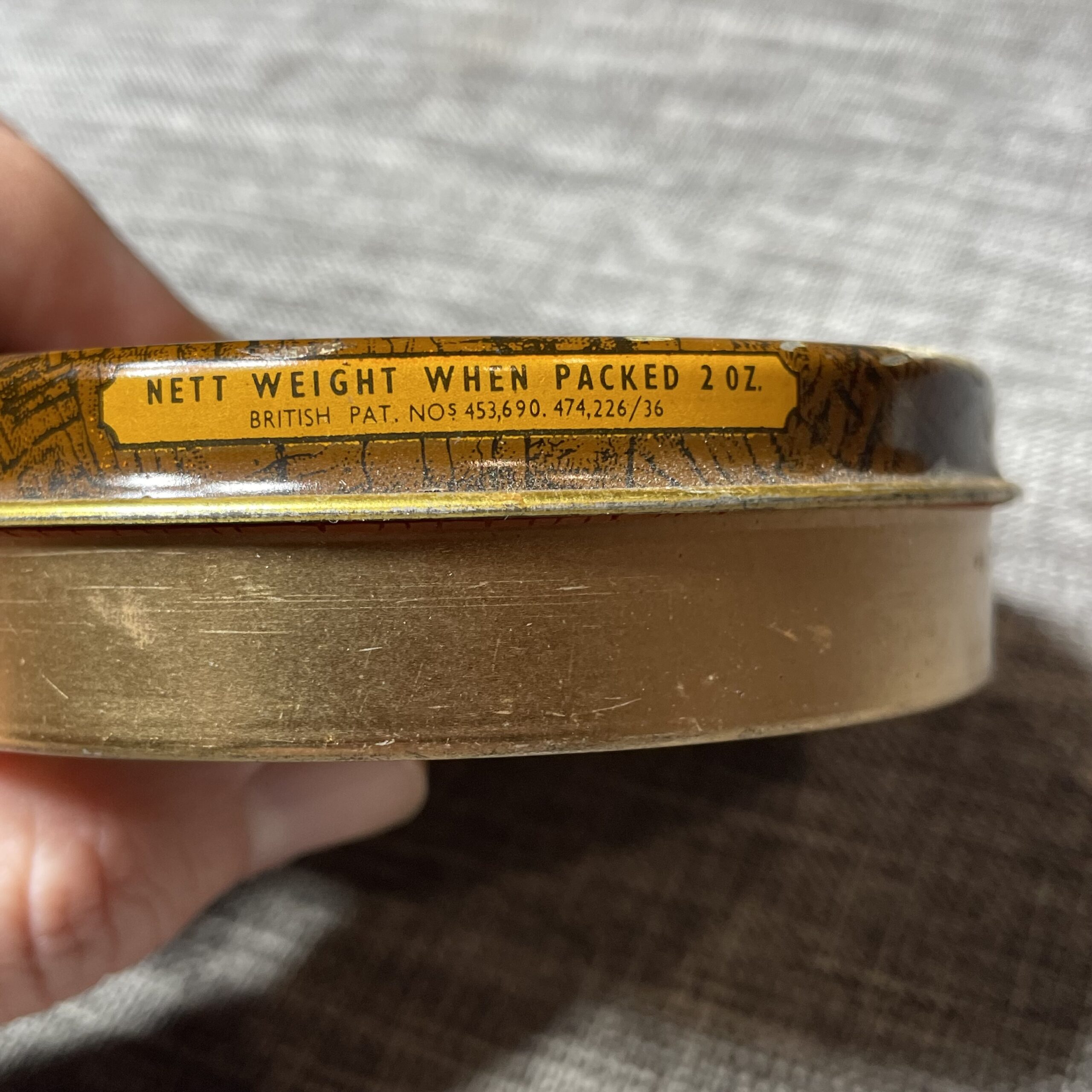 Acquired as part of an estate sale with several tins of 1940’s tobacco.