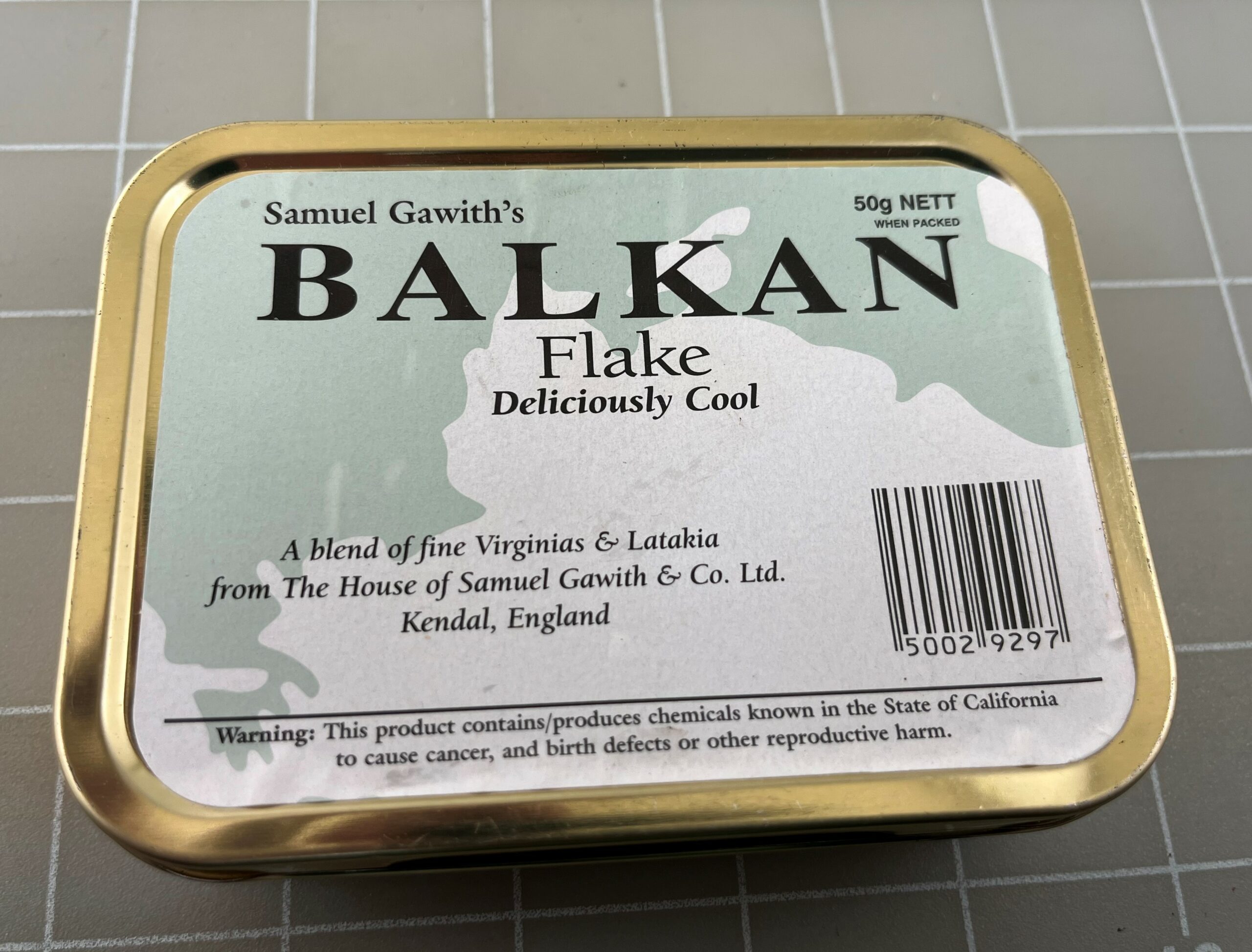 Sealed Samuel Gawith's Balkan Flake Deliciously Cool 50 Gram Tin. Excellent sealed Condition