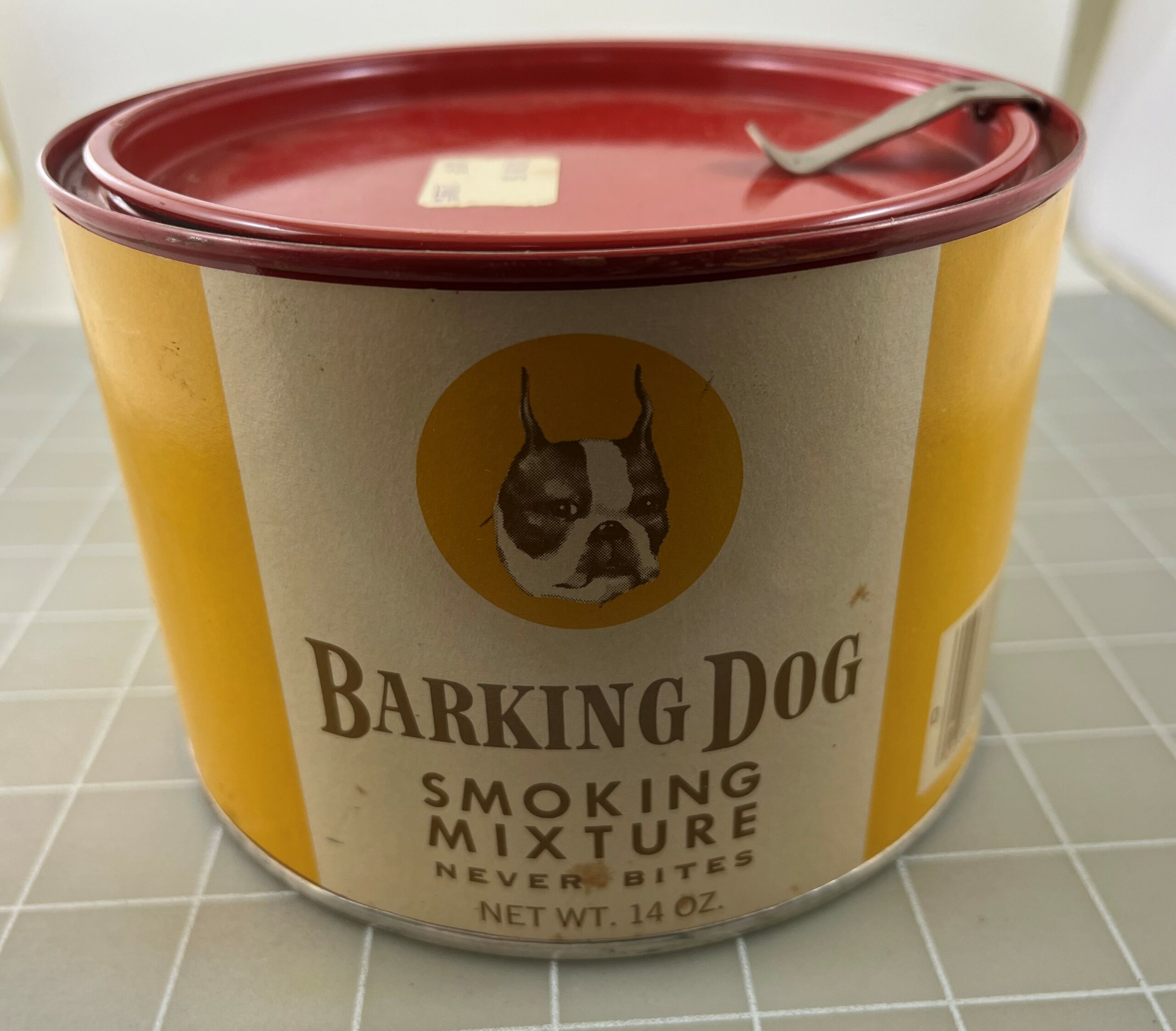 Vintage Sealed 14 oz Barking Dog Smoking Mixture Never Bites Tin