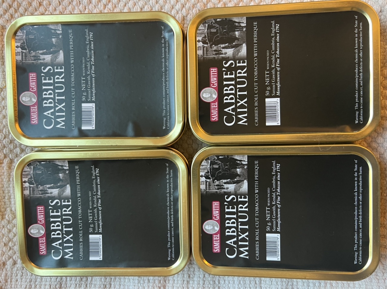 This auction is for 4 2018 Samuel Gawith Cabbie’s Mixture 50g Tins.