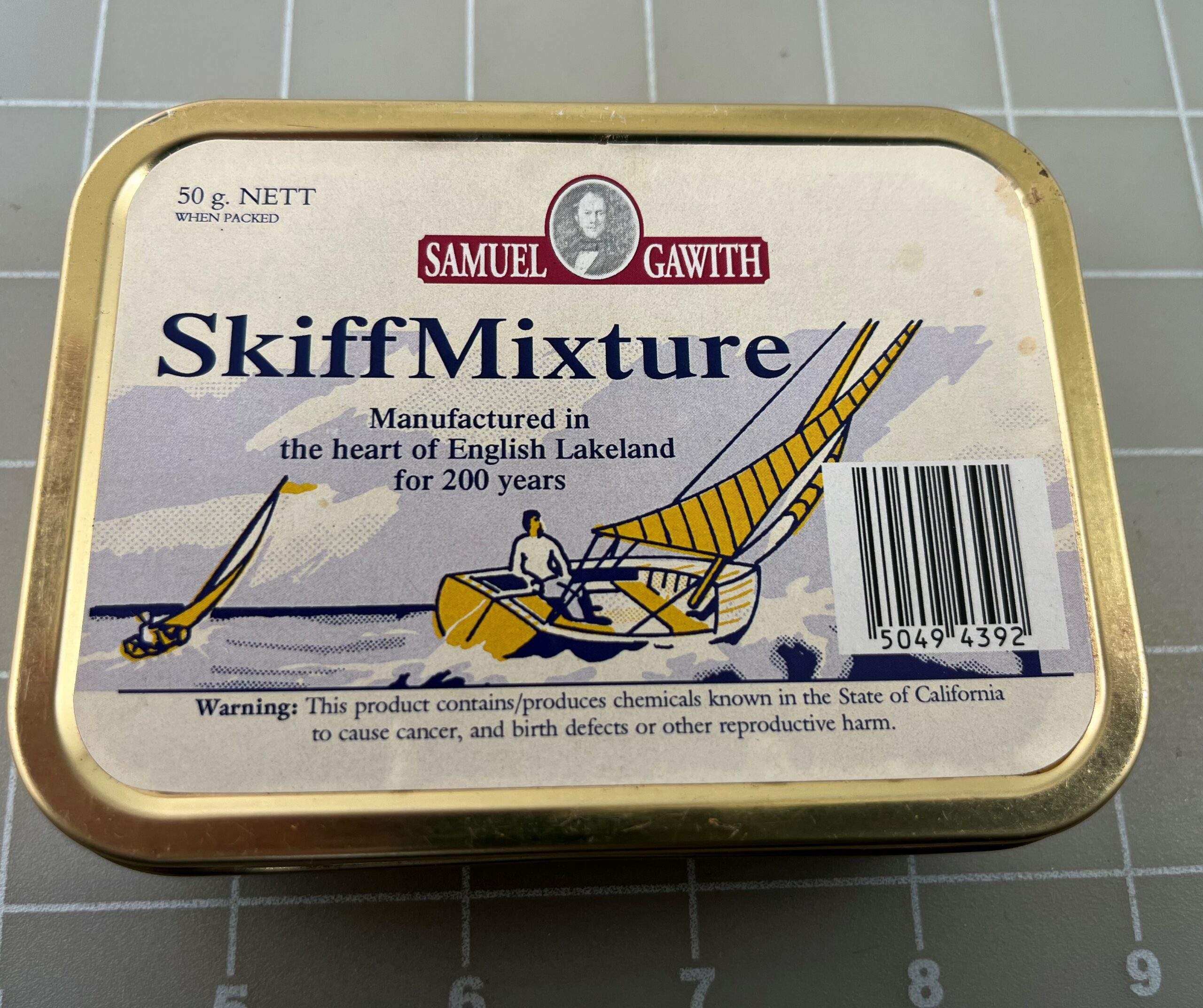 Sealed Samuel Gawith's Skiff Mixture 50 Gram Tin. Excellent sealed Condition