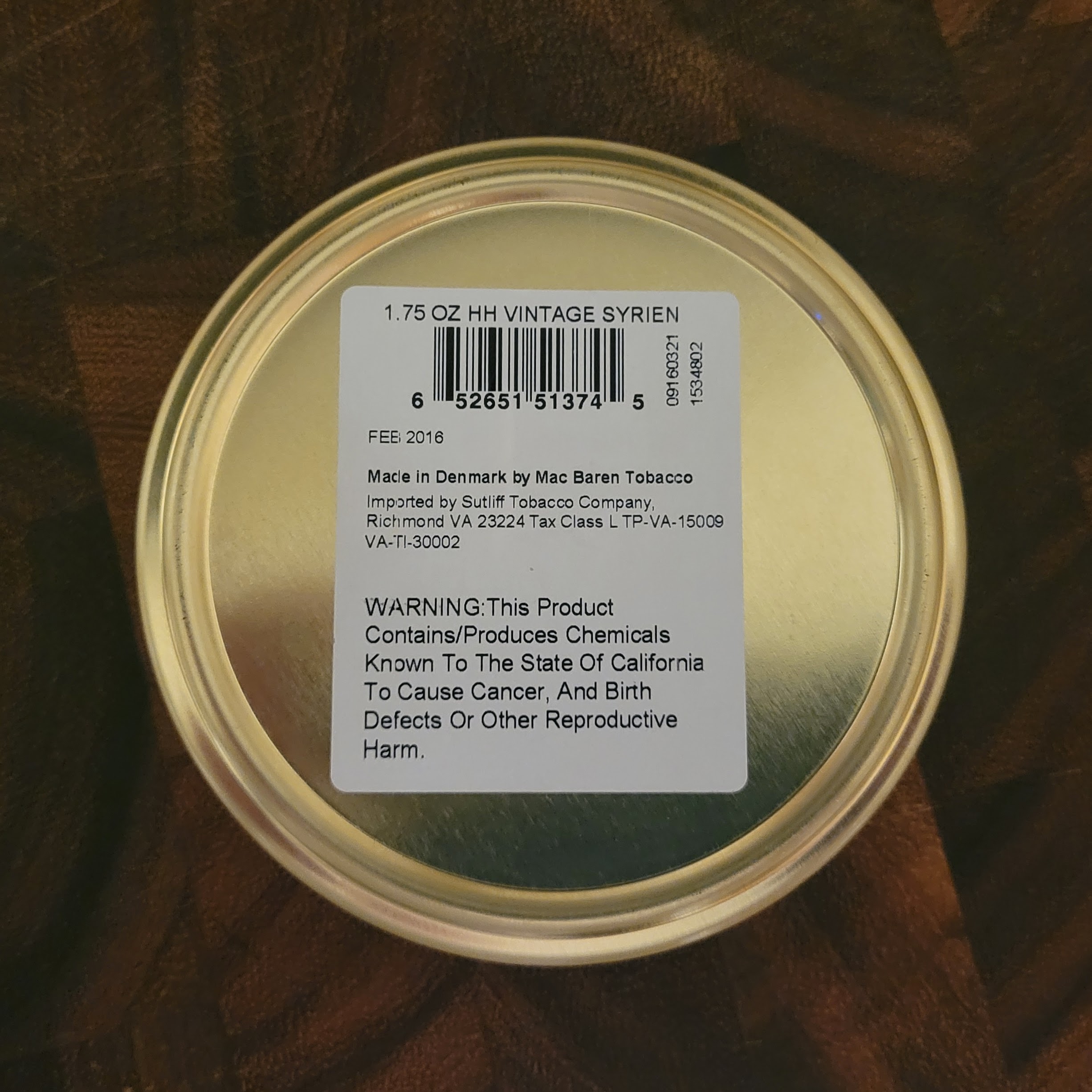 1 Tin of Mac Baren Vintage Syrian from 2016 with over 8 years of age.