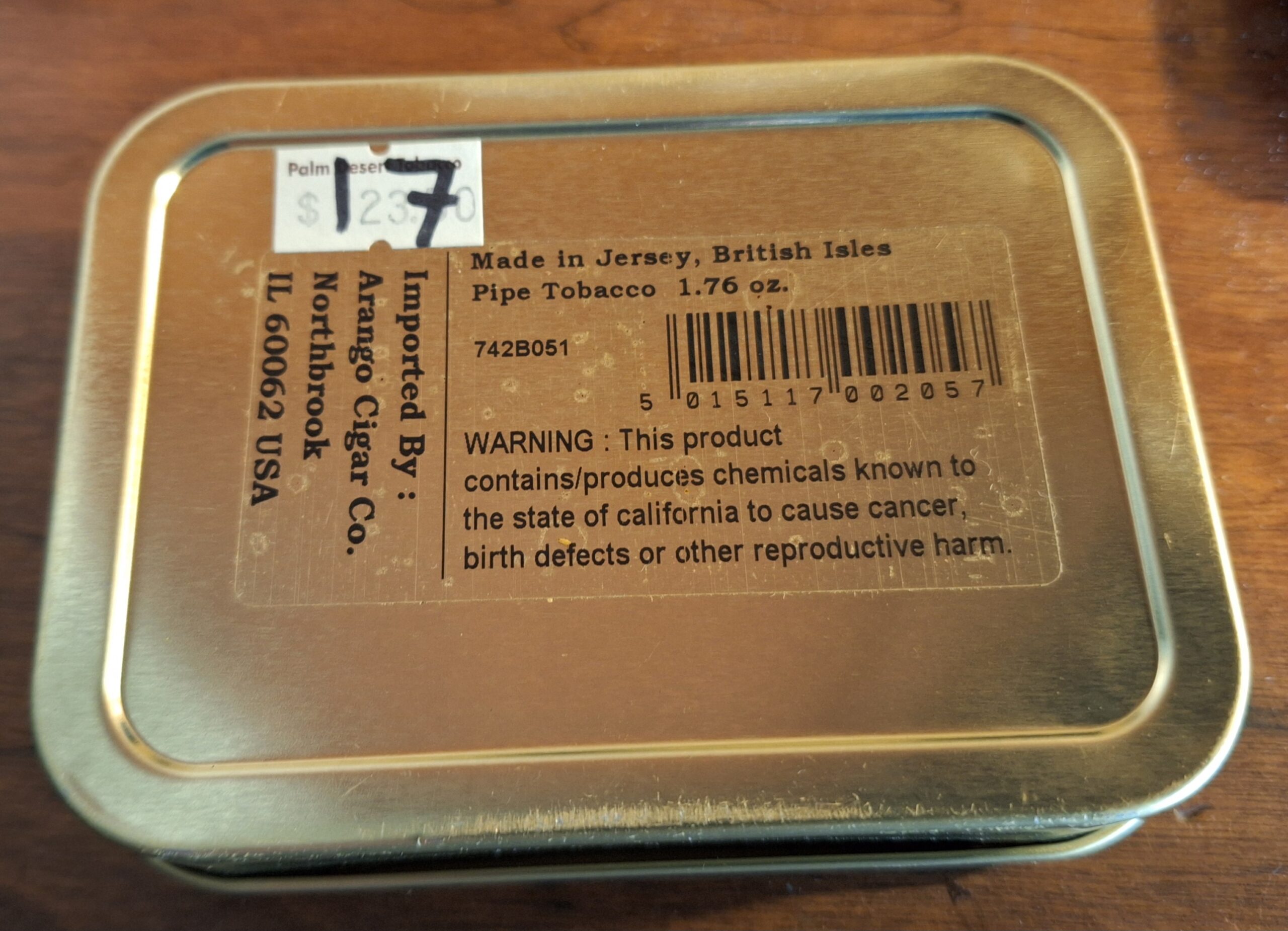 50 gram tin of Germain's Royal Jersey Mixture from 2017. Stored in my dark. Cool closet since new. Happy Bidding!
